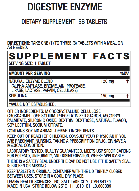 Las enzimas digestivas desempeñan un papel importante en nuestra salud, pero a medida que envejecemos va disminuyendo la cantidad de enzimas que nuestro cuerpo produce naturalmente. El suplemento Digestive Enzyme de USANA aporta una amplia variedad de enzimas adicionales que favorecen la descomposición de carbohidratos, grasas, proteína, lactosa y celulosa (vegetal) incluidos en nuestra dieta. Fomenta una digestión más completa para favorecer la absorción de macronutrientes.* Además, este suplemento de USANA es único porque contiene extracto de alcachofa, que ayuda a aliviar los malestares estomacales ocasionales, especialmente después de una comida abundante.*