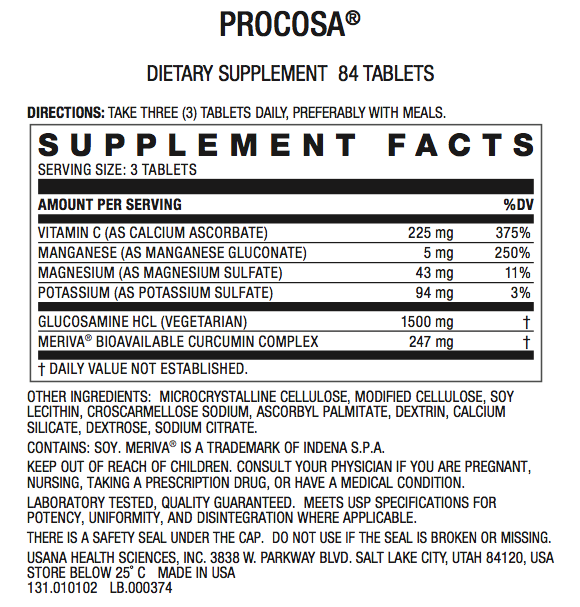 Procosa apoya una salud articular óptima de manera que usted pueda mantener un estilo de vida activo y hacer las cosas que usted ama hacer. La combinación de glucosamina y Meriva presente en el Complejo InCelligence para apoyar las articulaciones ayuda a influir en las vías de señalización que promueven de manera proactiva una óptima respuesta inflamatoria e inmunológica para restaurar una función normal después de hacer ejercicio.*